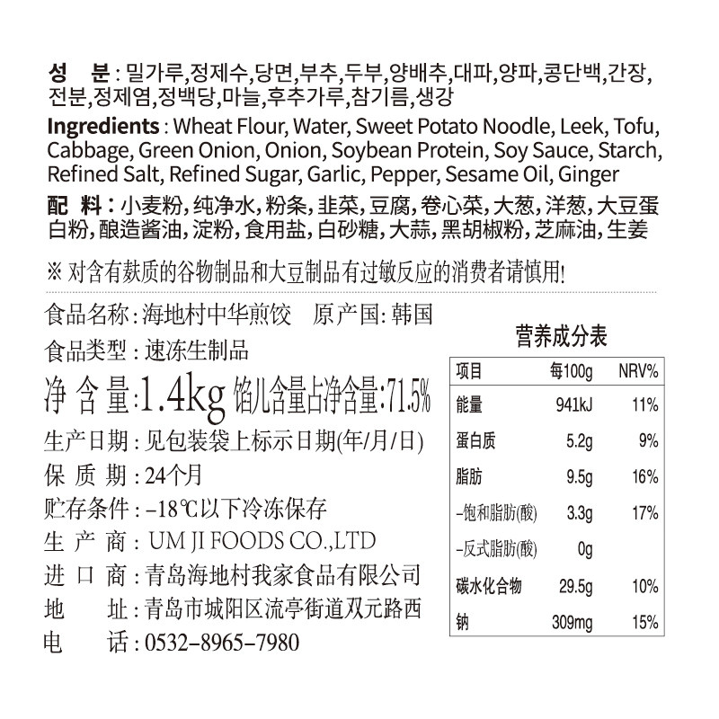 South Korea imported Haitian village Chinese fried dumplings 1 4kg frozen dumplings dumplings Breakfast fried dumplings large package
