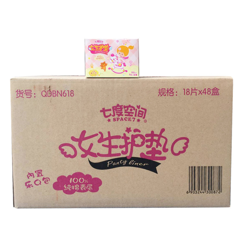 Seven-degree space sanitary cotton girl pad cotton surface fragrance-free thin 18-piece 24-box QDBN618