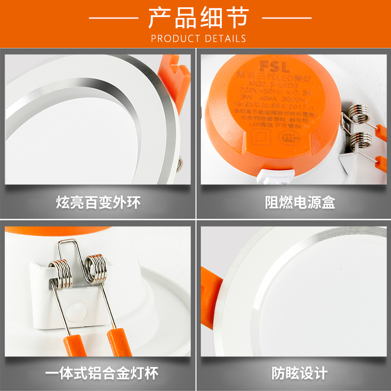 Foshan Lighting LED downlight living room ceiling hole light suspended ceiling embedded 2 5 inch drill hole 8cm 4 inch 5 inch 6 inch