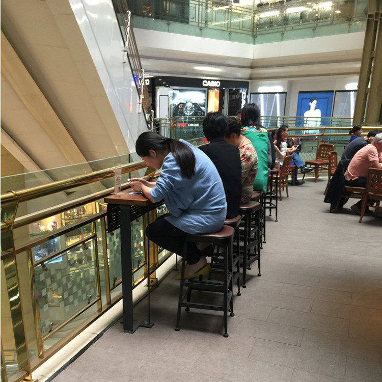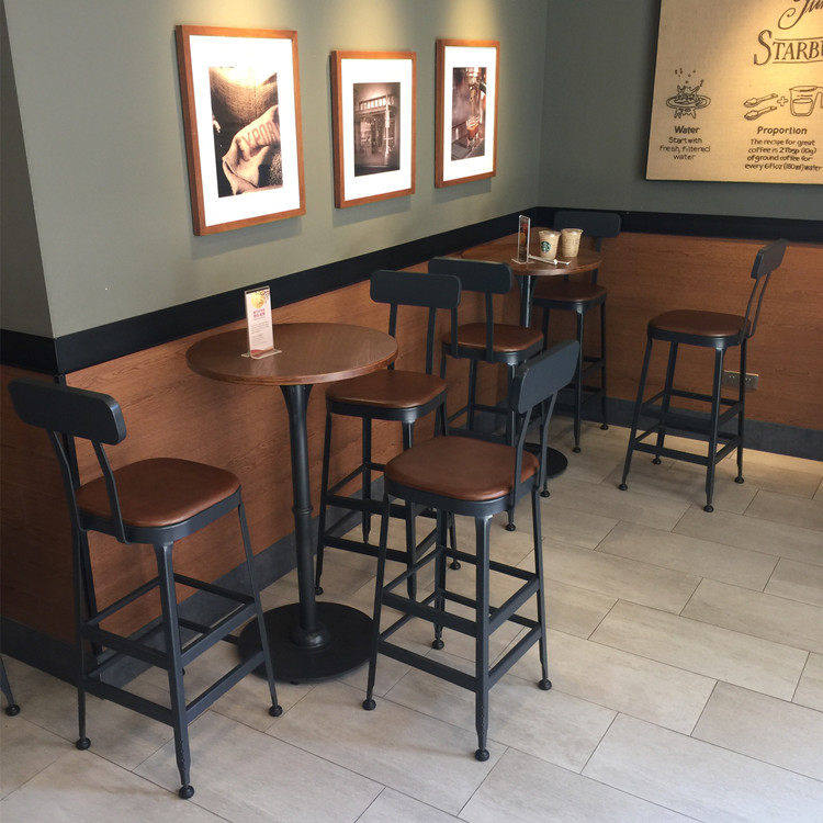 Brief Modern Iron Art Solid Wood Bar Table Dining Table And Chairs Combine High Foot Coffee Bar Stool High Table Milk Tea Dining Chair