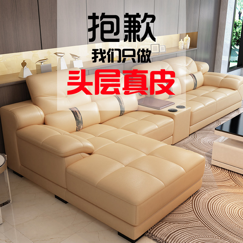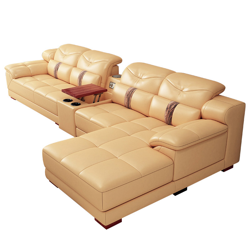 The first layer of leather yellow leather sofa modern minimalist large and small living room corner combination furniture leather art sofa