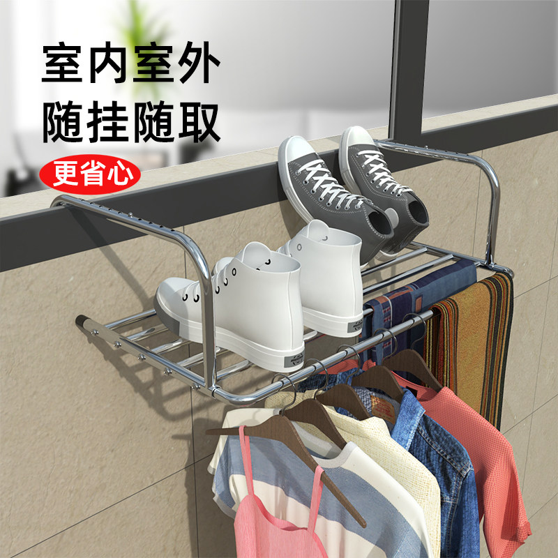Outside the window drying rack balcony drying artifact window high-rise outdoor retractable shoe rack anti-theft window sill rack rack