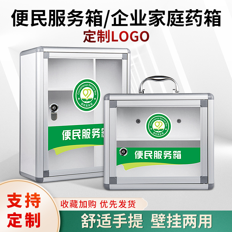 Civilian Service Box Medicine Box With Lock Aluminum Alloy First Aid Box Enterprise Wall-mounted Hospital Community Service Box Emergency