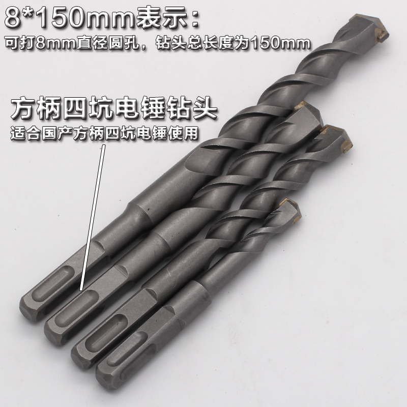 Square electric hammer drill bit four pits plus long square handle impact drill bit concrete cement alloy drill bit 6 7 8 10mm
