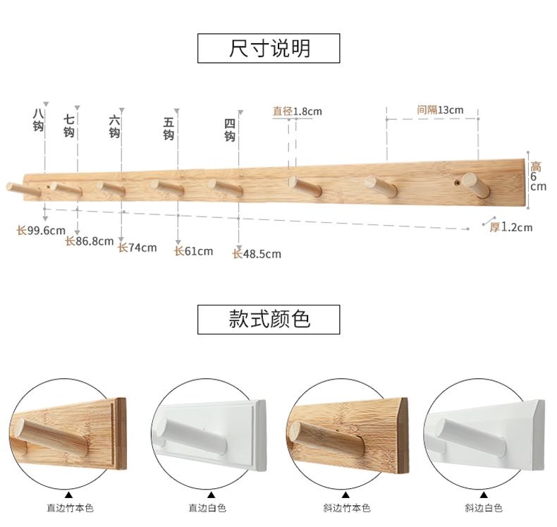 Pure bamboo hook (straight edge natural color 3 hooks) Pure bamboo hook (straight edge natural color 4 hooks) Pure bamboo hook (straight edge natural color 5 hooks) Pure bamboo hooks (straight edge natural color 6 hooks) Pure bamboo hooks (straight edge original color)