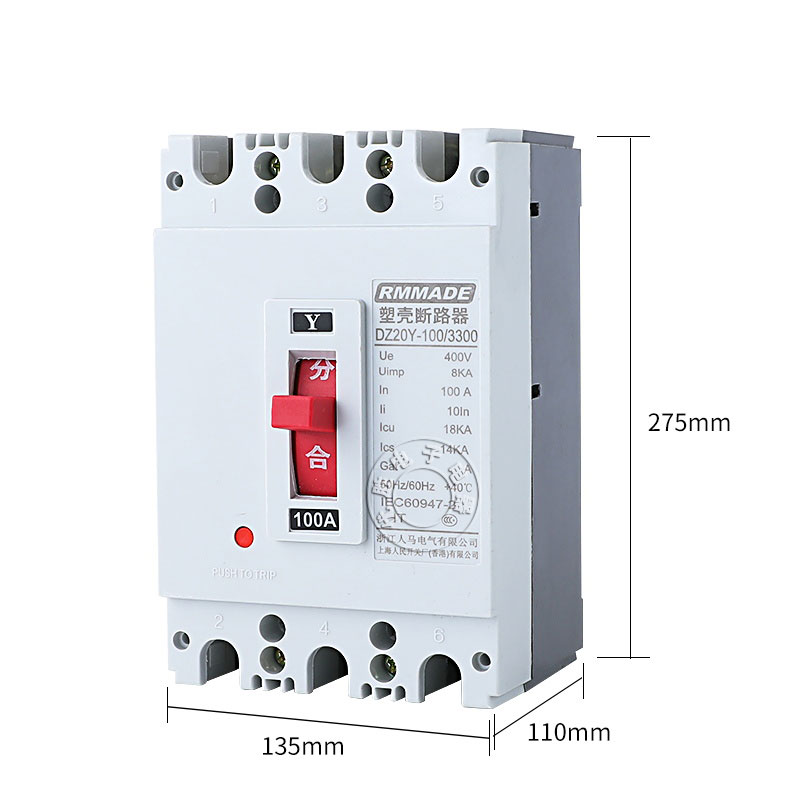 Plastic shell breaker DZ20Y-100 3300 100A 100A 400A 400A 3P 3P switch three-phase three-wire