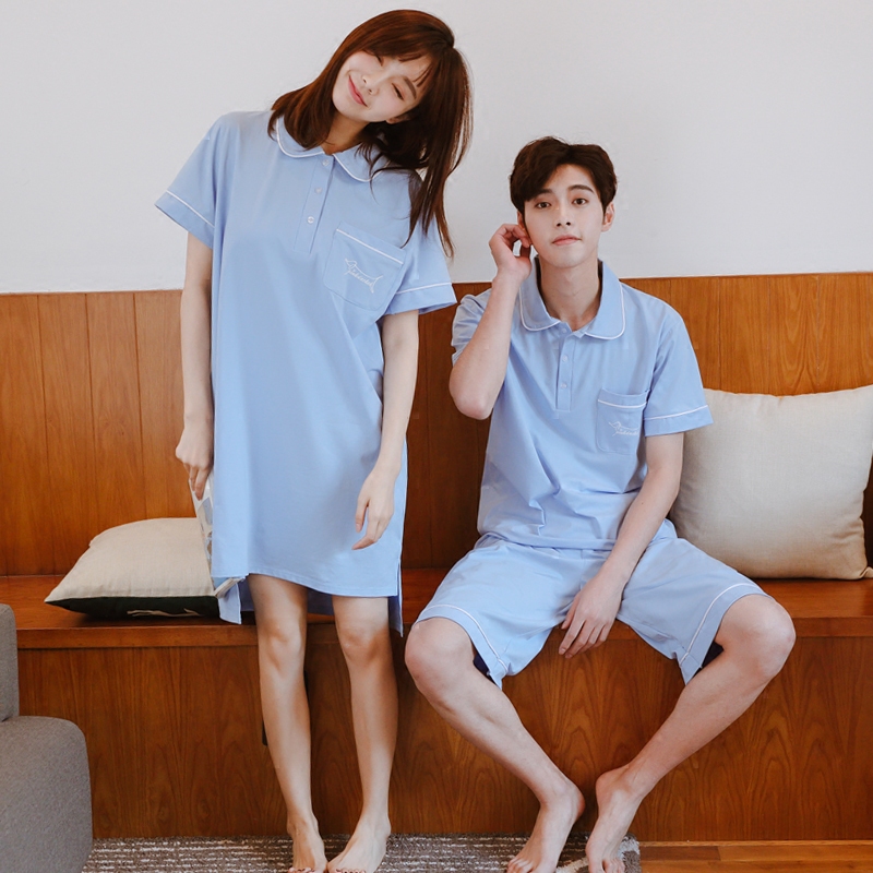 Couple pajamas summer short-sleeved new suit loose leisure fresh and sweet summer home wear nightdress for female students