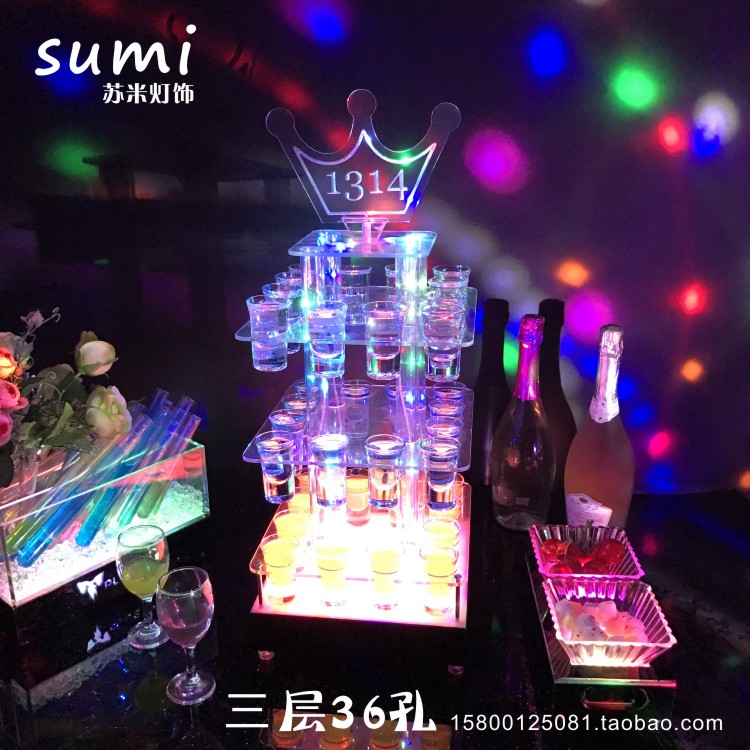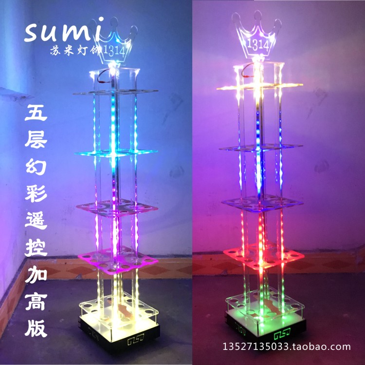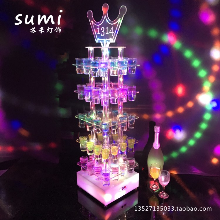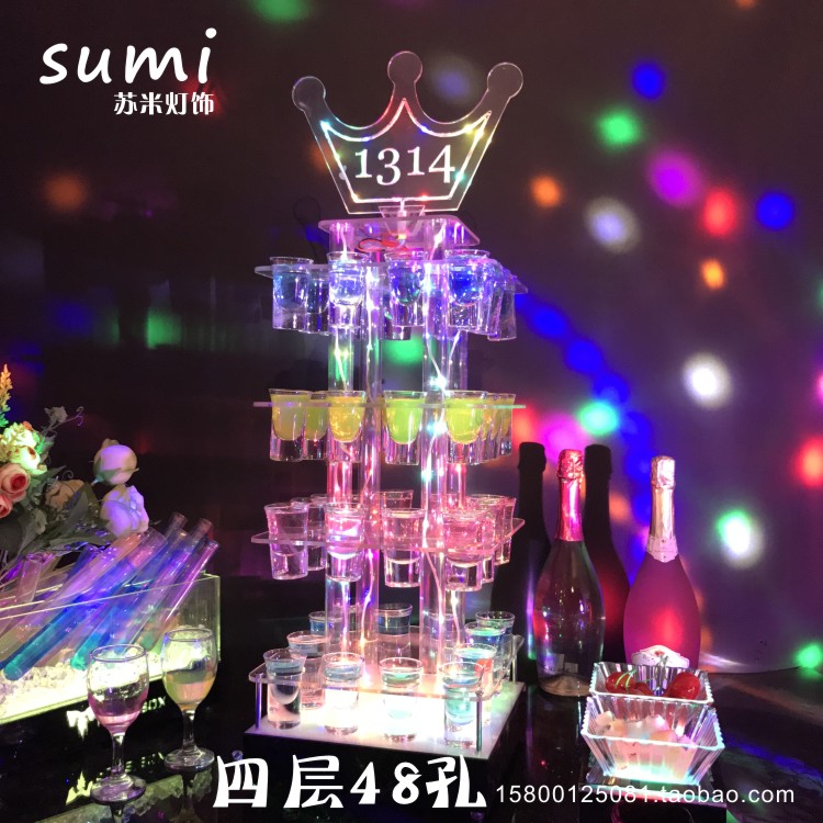 New LED Luminous Cocktail Rack Creative Bar Commercial 1314 Five Layers Square Bullet Cups Rack Cocktails