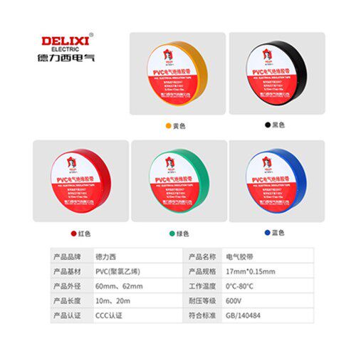 Delixi Electric rubber fabric 10 m 20 m electrical insulation yellow green red and black PVC rubber 20M swing accessories