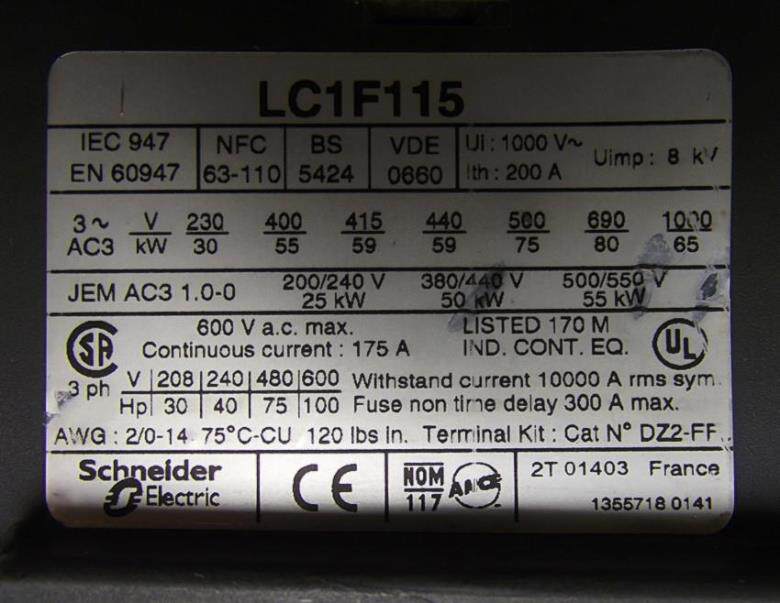 Schneider LC1 F 115 contactor made in France with auxiliary contacts LX1FF110 3 pcs in a set Special price