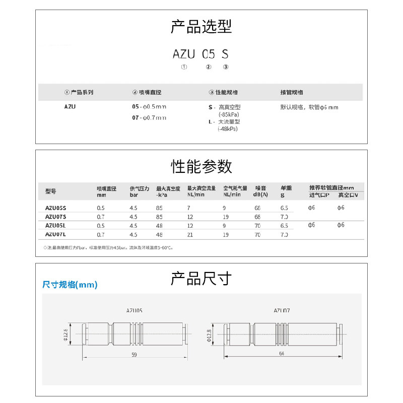 ZV06 08 pneumatic negative pressure tubular vacuum generator VML1006 generator AZU ZU05S07S07L-04-Taobao