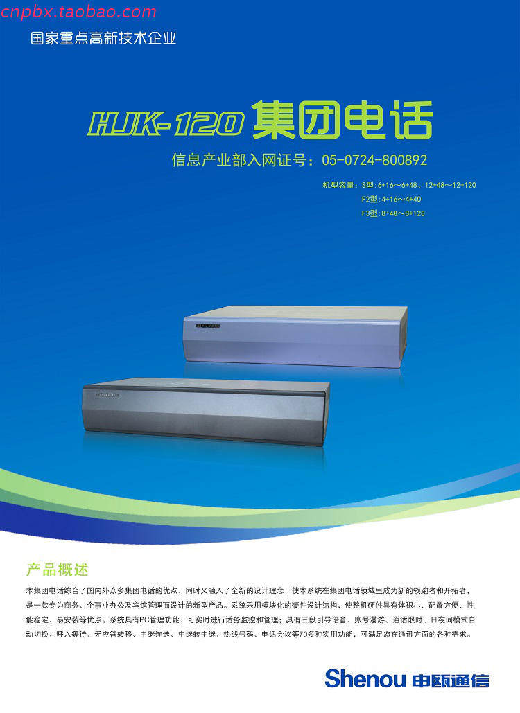 Shenou HJK-120 group program-controlled telephone switch 6 external line 88 extension 6 in 88 out with PC optional