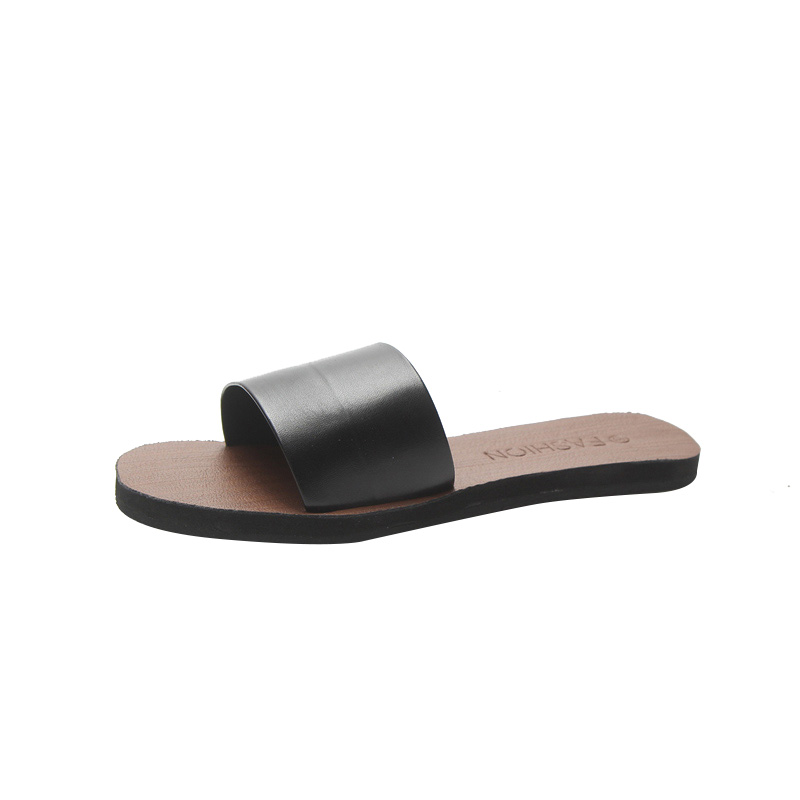 2023 summer new Korean style fashion all-match one-word slippers women's flat heel flat bottom beach non-slip sandals and slippers women's shoes