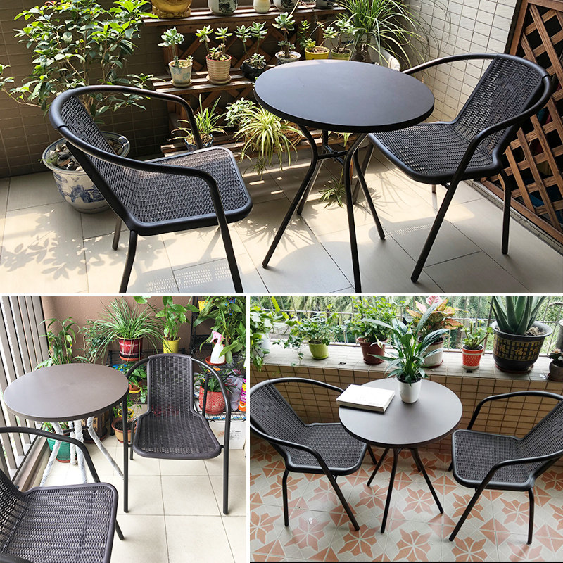 Yuanmao net red balcony small table and chair outdoor leisure tea table and chair combination rattan chair three-piece set outdoor terrace two chairs