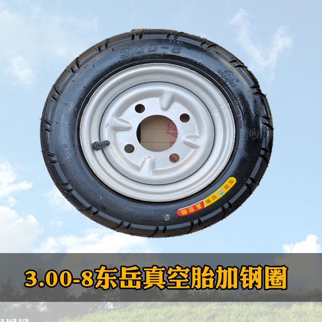275-8 Chaoyang vigorous god vacuum a 3 00-8 rear wheel a 4 00-8 Chaoyang outer tire a 300-8 dongyue vacuum tire plus silver gray steel ring set (black circle remark