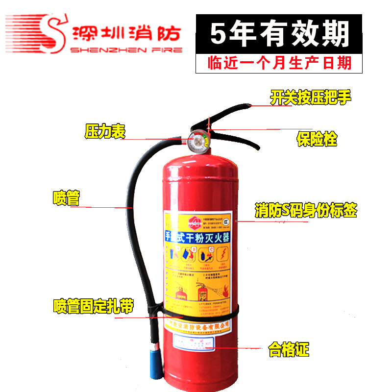 National standard fire extinguisher 4 kg household Shengan 4kg dry powder fire extinguisher Factory special shop shop fire equipment