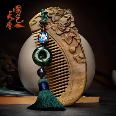 Carved comb Wood comb sandalwood wood natural day massage comb Green sandalwood comb Female household small portable model