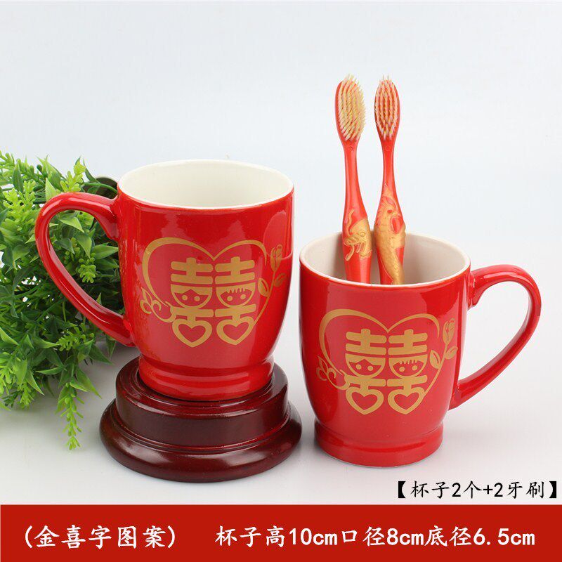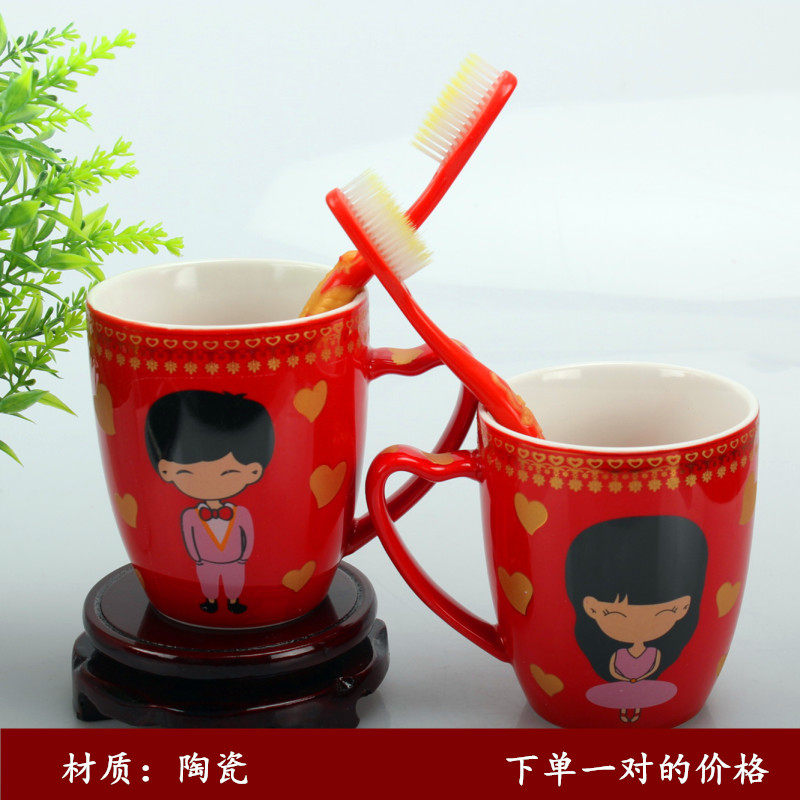 Wedding Wedding Celebration Supplies Red ceramic mug lovers Heineme tea cup gargling with shank toothbrushing against cup