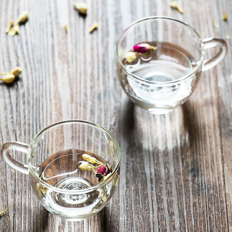 Heat-resistant glass small handle cup with handle small flower tea cup Tea cup 100ML can be used in microwave oven