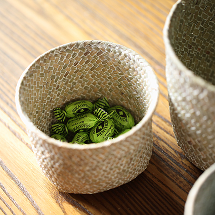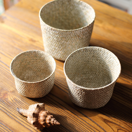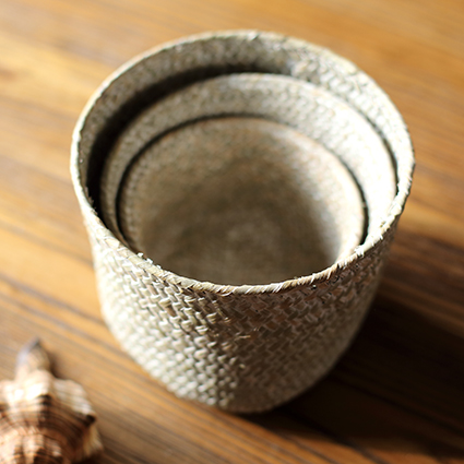 Creamy natural color straw woven small circle storage desktop bathroom bedroom kitchen storage flower utensils pure hands