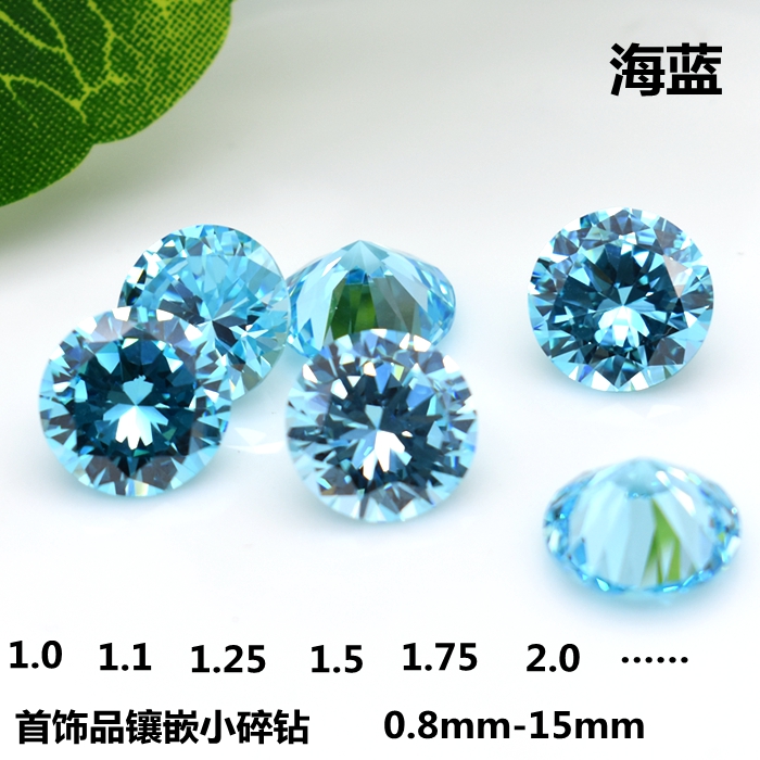 Natural aquamarine round small broken diamond loose stone blue ring with loose diamond jewelry inlaid with stone diy
