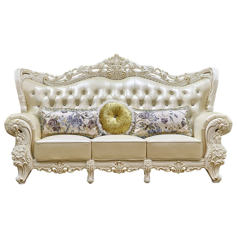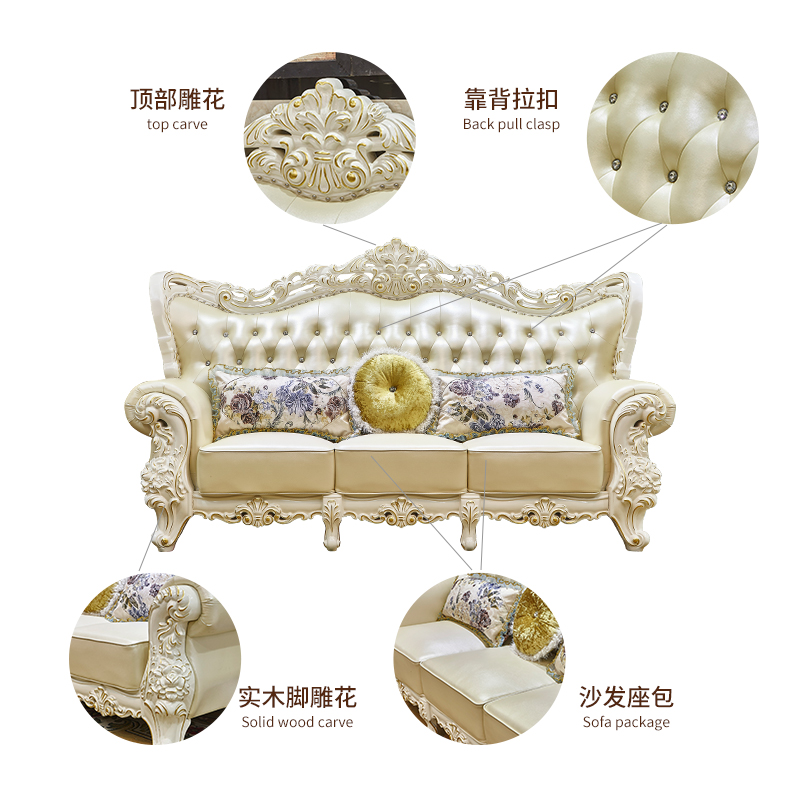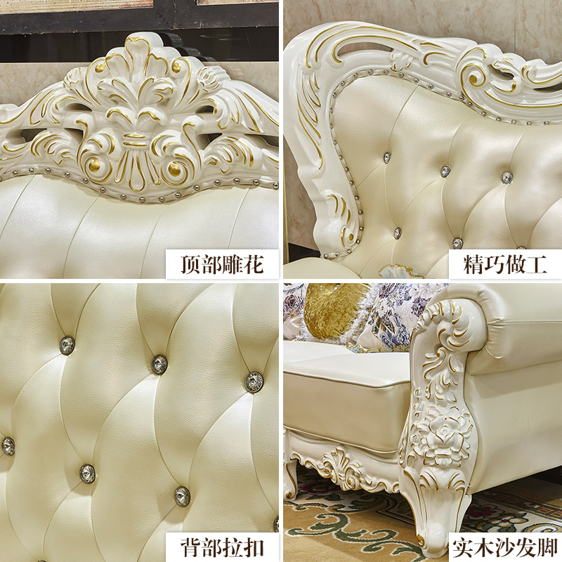 European-style sofa leather sofa head layer cowhide combination living room solid wood carved leather art sofa American retro sofa