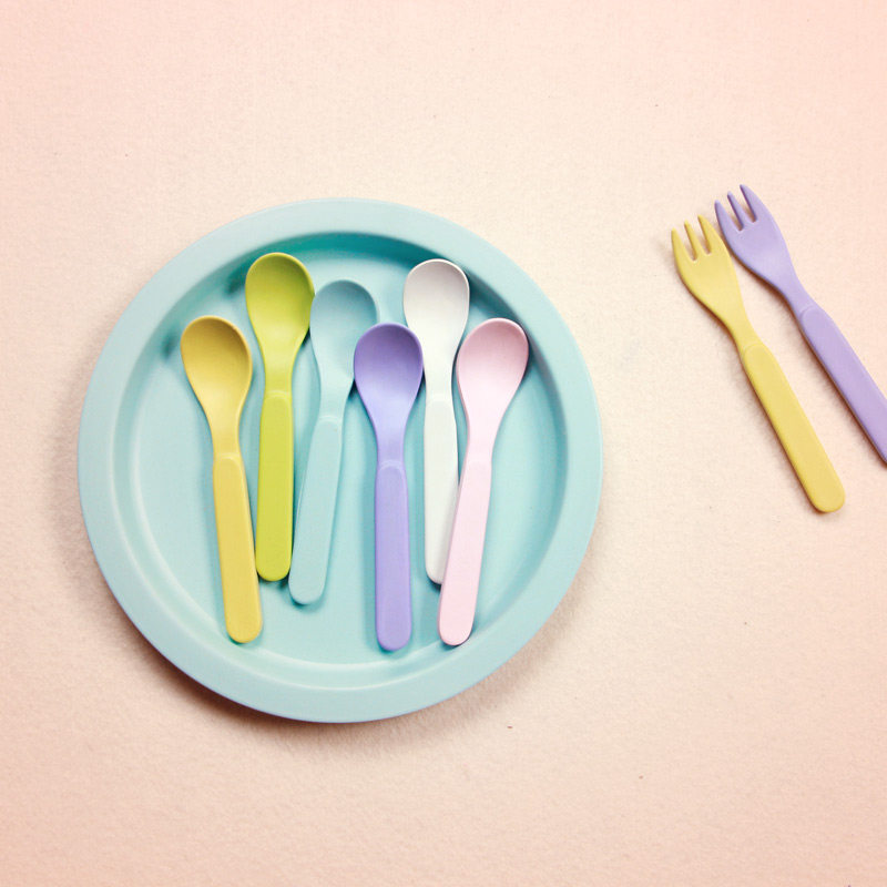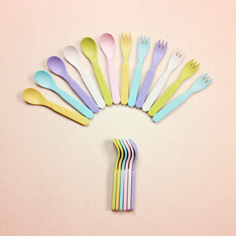 Pink fork spoon bean blue fork spoon yellow fork spoon purple fork spoon beige fork spoon 6 color spoons 6 packs 6 color forks forks 6 packs gray fork spoons