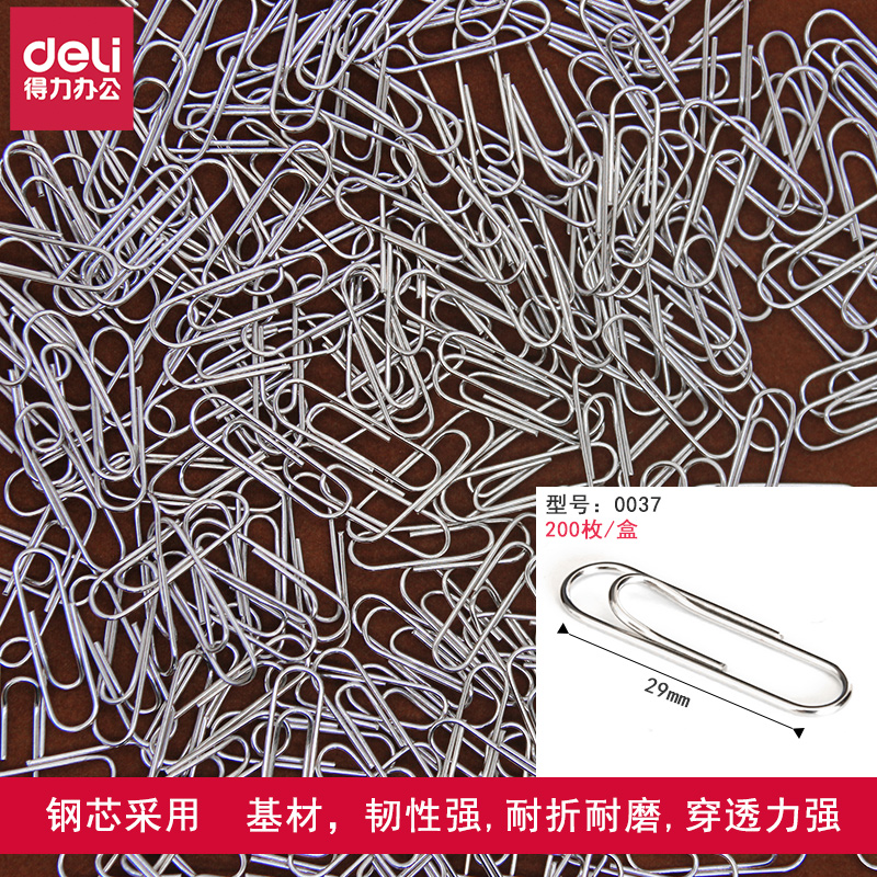 DELI silver metal paper clip 0018 3#paper clip 29MM Financial supplies 1000 pieces large capacity