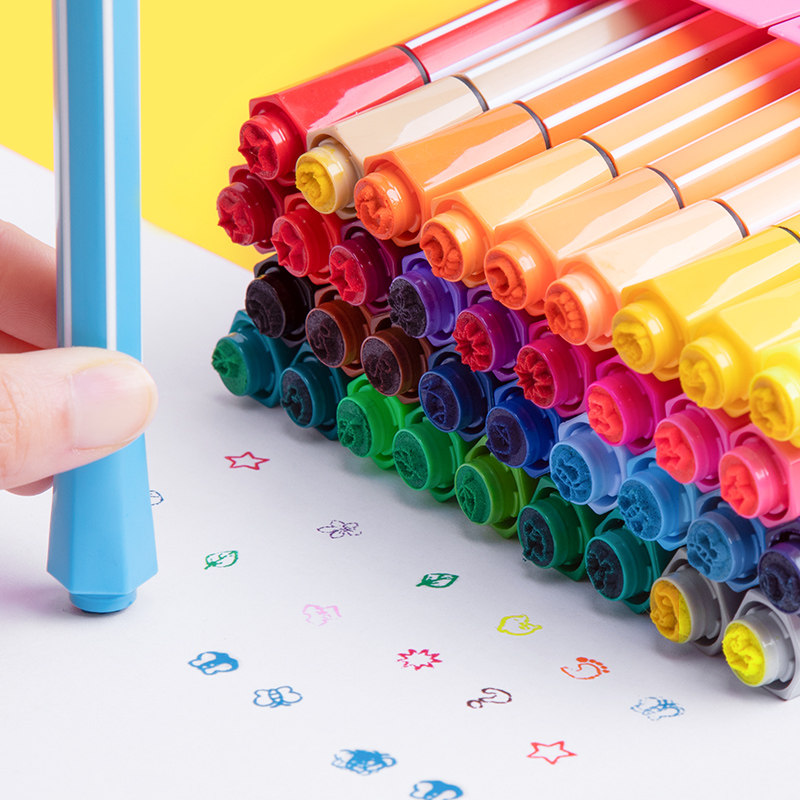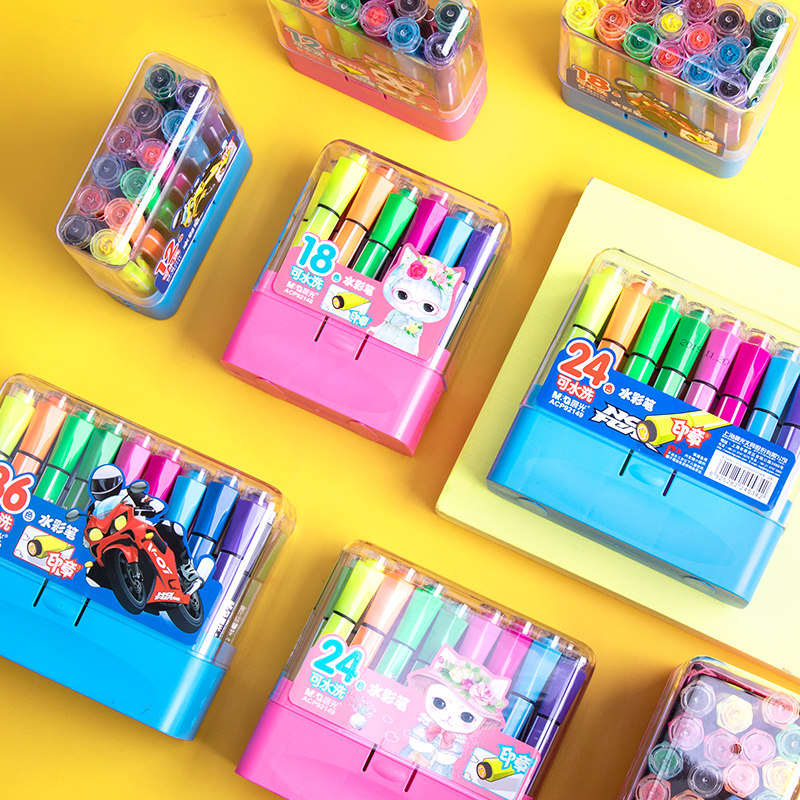 Early light watercolor pen children with stamps color pen safety non-corrosive washable professional fine art painting brush set 24 color 36 color kindergarten students with beginners with large capacity brush