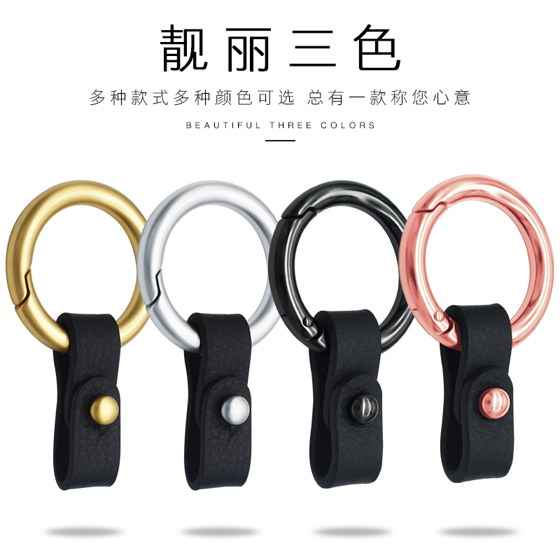 High-end car waist hanging key button small sedan lock spoon genuine leather male and female metal car key buckle chain ring horseshoe