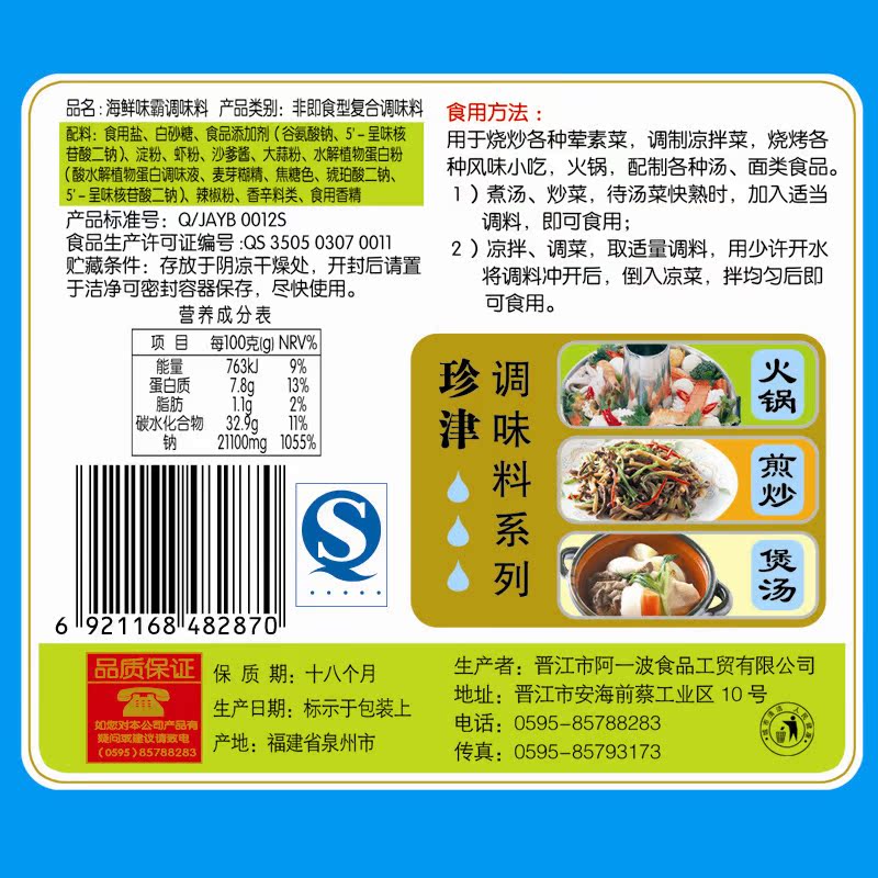 Ayibo Zhenjin Seasoning Hot Pot Soup Base Seafood Weiba 173g Seasoning Excellent Fujian Specialty Catering Seasoning