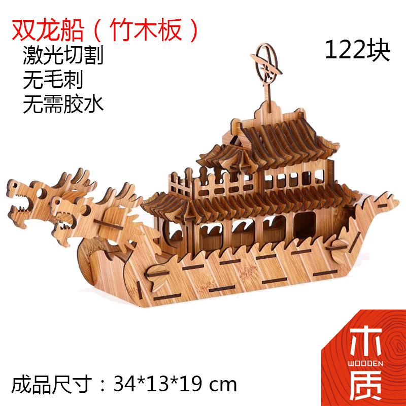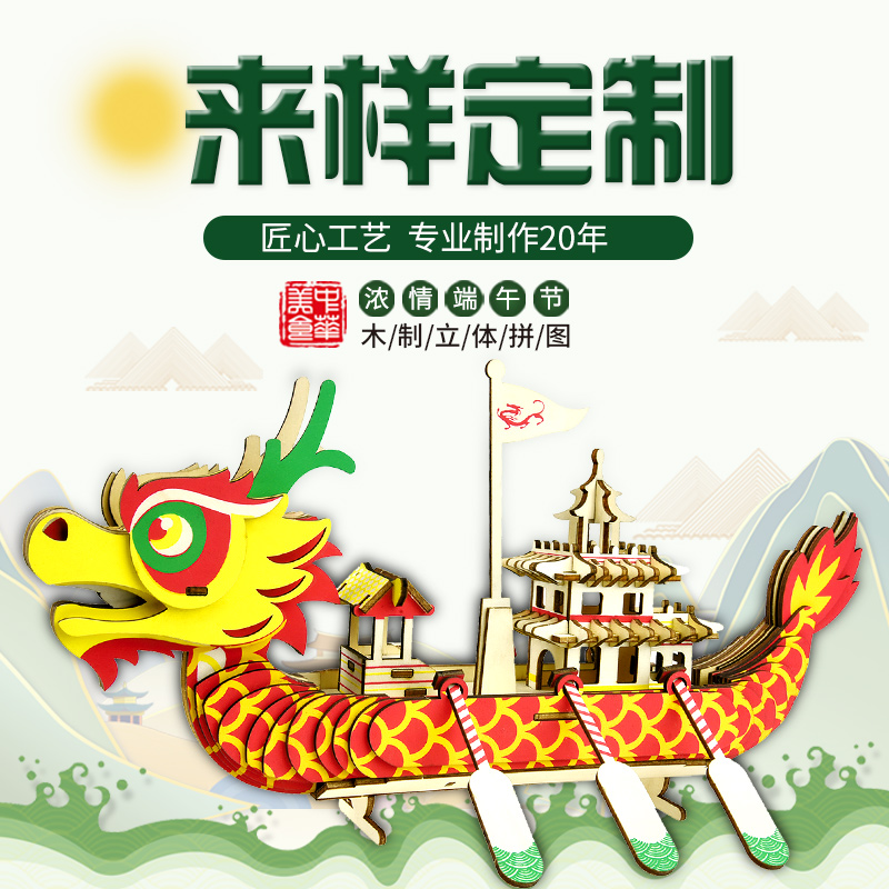 Dragon Boat Festival dragon boat race 3diy handmade puzzle three-dimensional dragon boat puzzle building blocks assembled wooden model ornaments