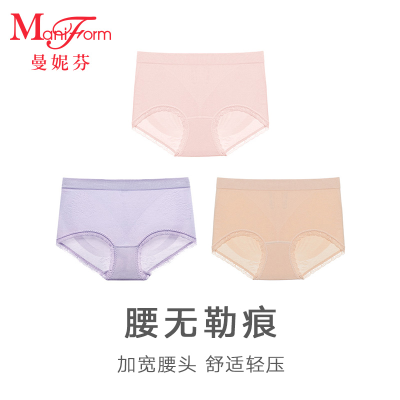Manifin 3-piece Manifen Shu-soft non-feeling underwear waist female lace cotton crotch no-scented pants 20710941