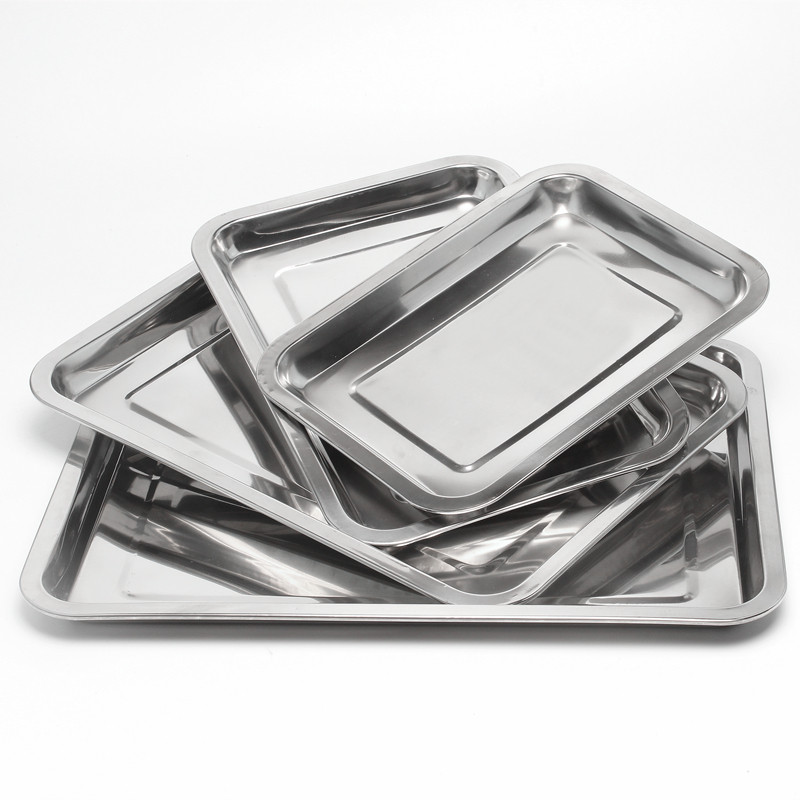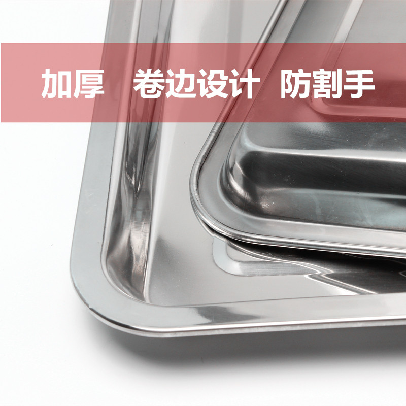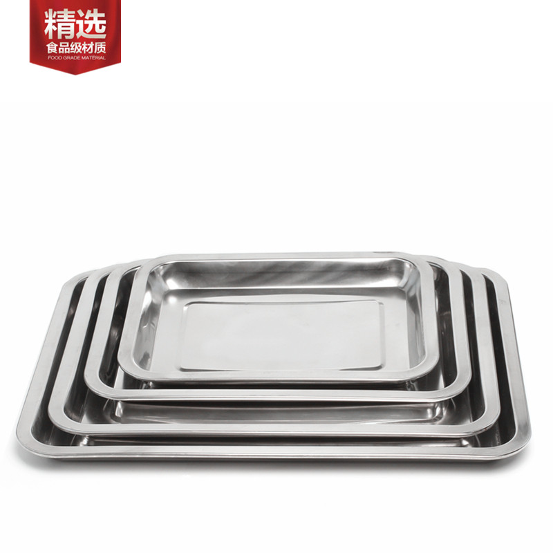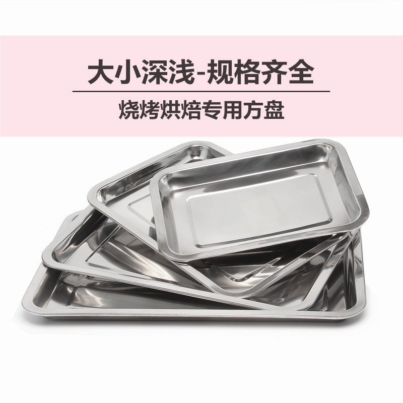 Thickened stainless steel square plate barbecue guy deep and shallow tray rectangular plate barbecue tool accessories canteen dish