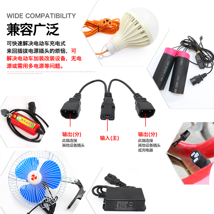 Electric vehicle one minute two conversion line one minute three or four battery charging port product type three way one drag two conversion plug