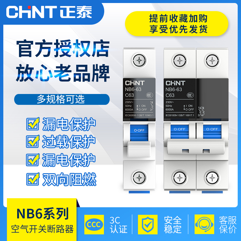 CHINT Air switch Household air open circuit breaker 2P total switch power-off protector NB6 Taiji series