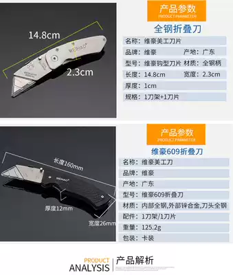 Heavy-duty all-steel padded folding padded padded knife electrician trapezoidal horn industrial wallpaper blade weihao