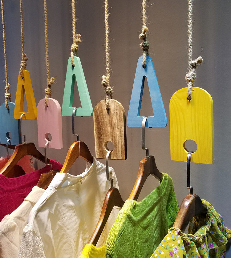 Solid Wood Retro Hanger Clothing Shop Hanging Chain Display Rack Upper Wall Clothing Rack Hemp Rope Rings Women's Clothing Hanging Clothes Hanger