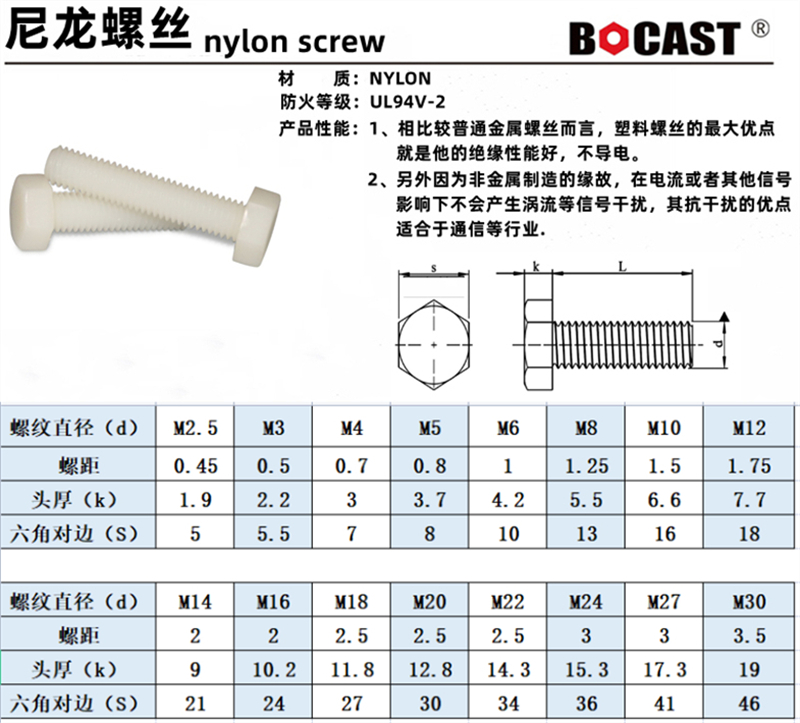 National standard plastic screw M3-M8 nylon outer hexagonal screw insulation plastic screw outer hexagonal screw bolt
