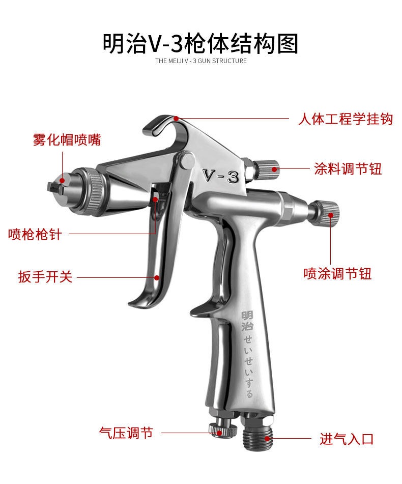 Meiji V-3 small repair spray gun pneumatic spray gun leather care dry cleaner special spray gun 0 5