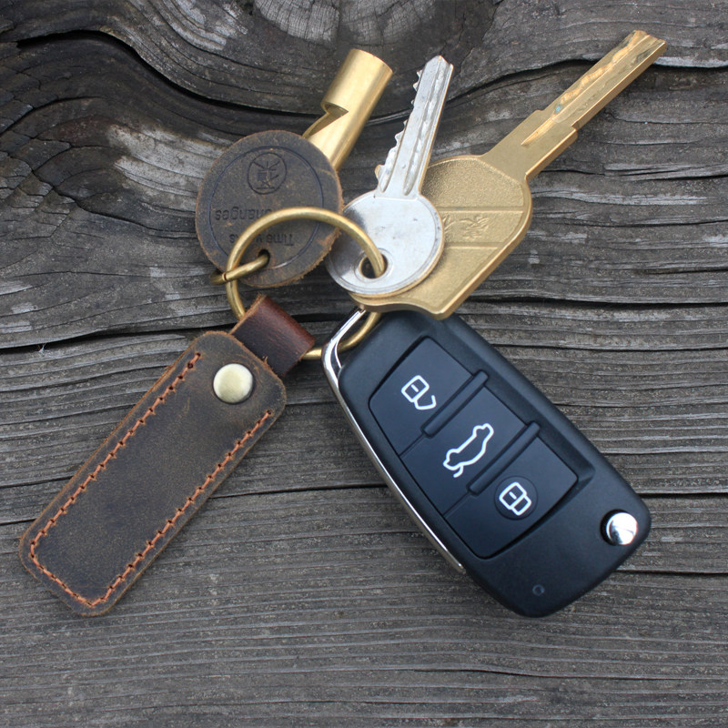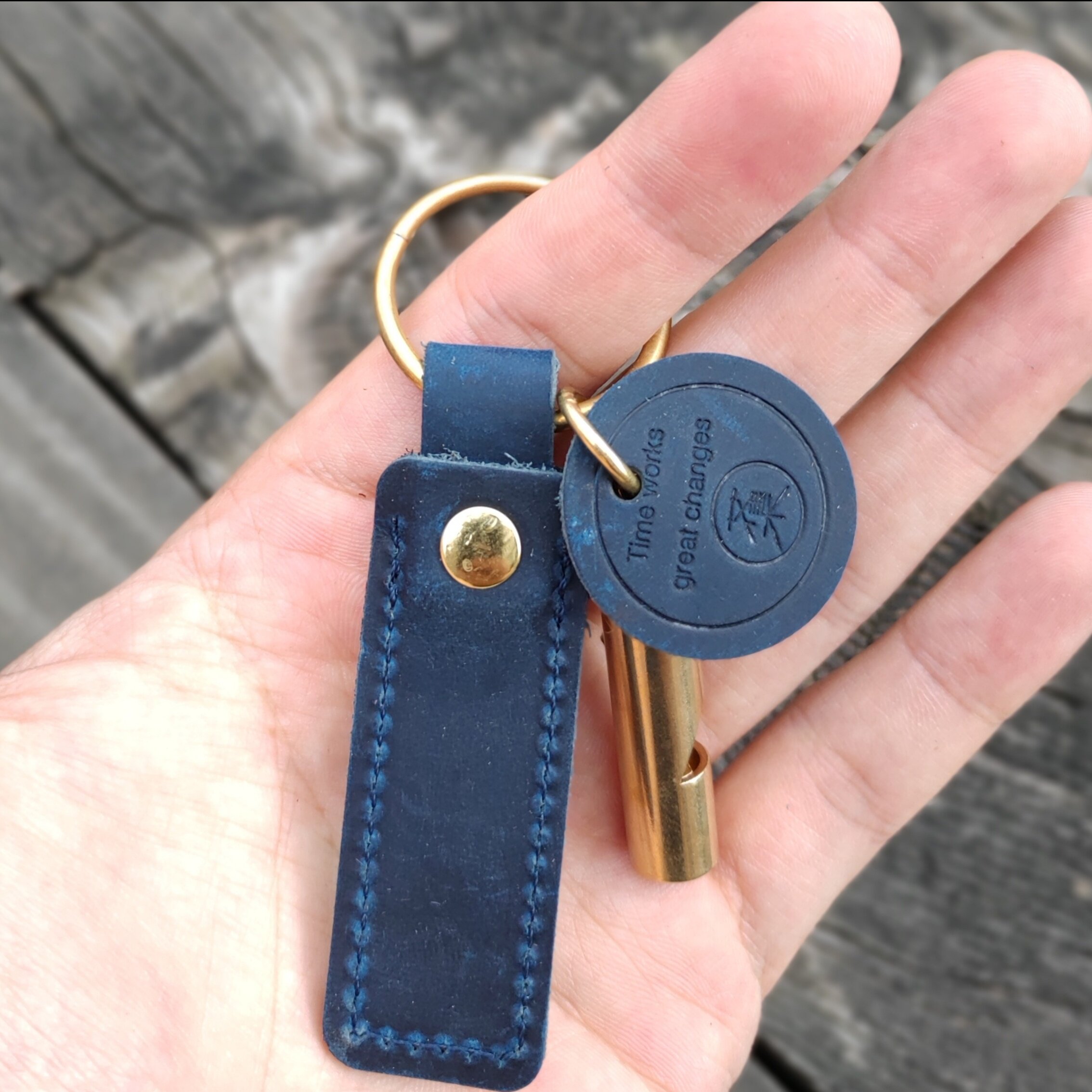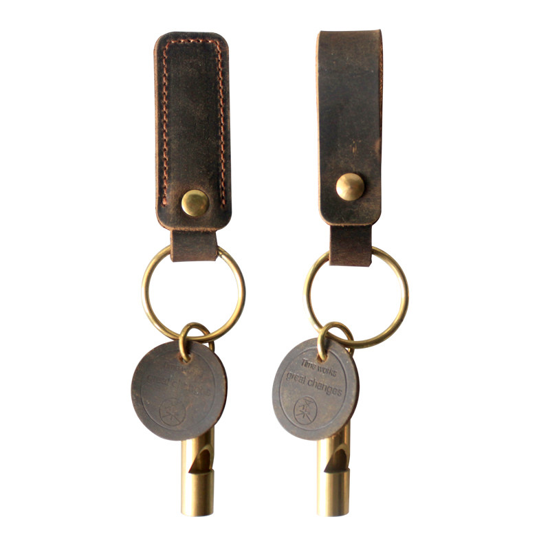 Ai Set Handmade Brass Bull Leather Key Buckle Retro Crazy Mapleather Car Key Ring Pendant Mouth Whistle Creative Gift
