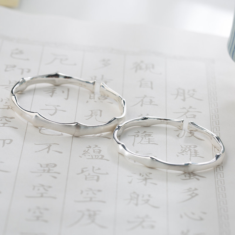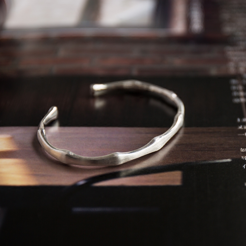 Clouds such as hometown foot silver 999 brushed bamboo joint simple opening sterling silver couple bracelet Women Men's