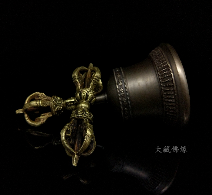 Nepalese pure handmade trumpet King Kong bell and pestle 5 strands of pure copper black hand-cranked bell a set of Tibetan Tantric instruments