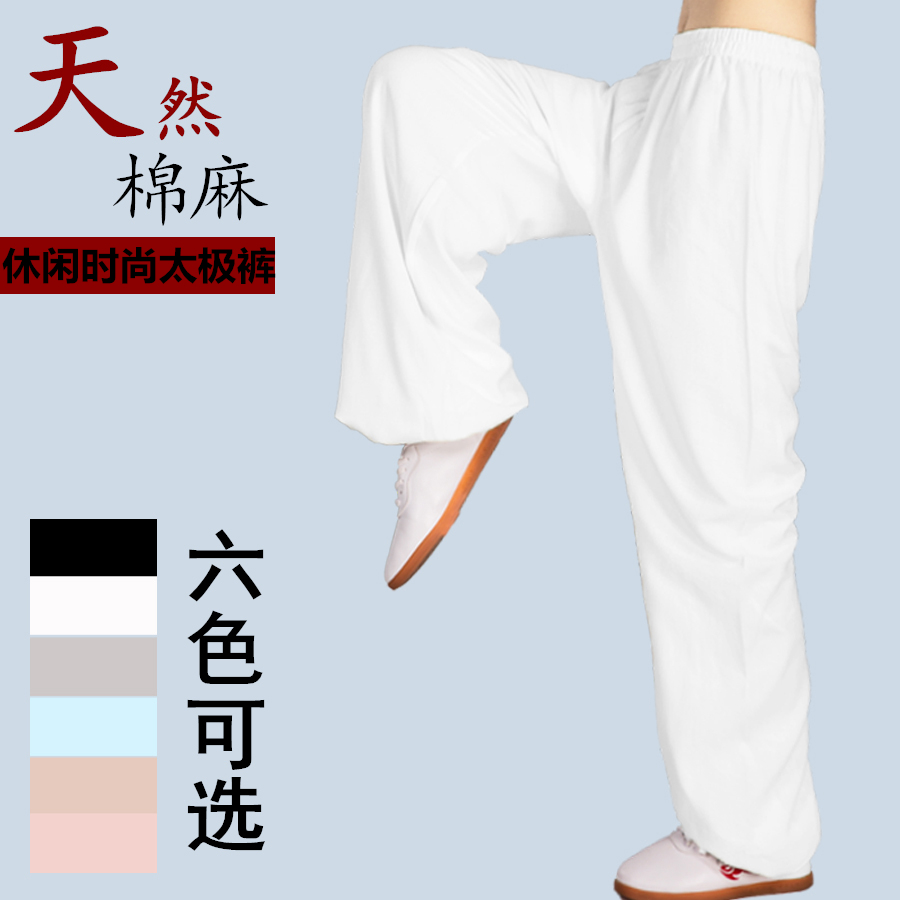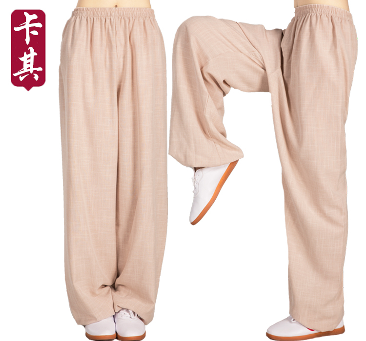 Tai Chi pants women's cotton and hemp summer middle-aged men's bloomers Martial arts practice pants loose large size morning exercise pants linen