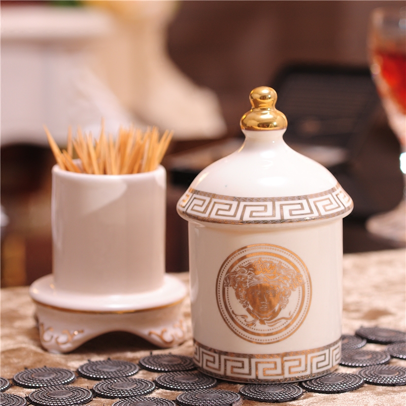 european style ceramic toothbrush cylinder cotton swab cylinder home floss cylinder living room tea table dining table decoration decoration