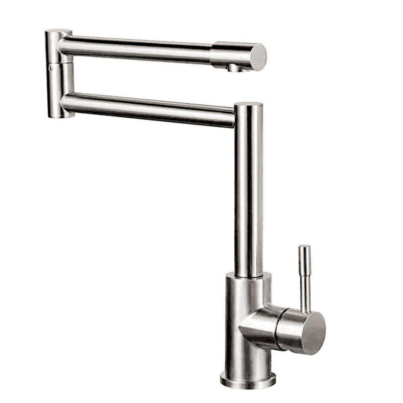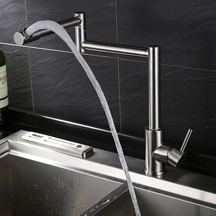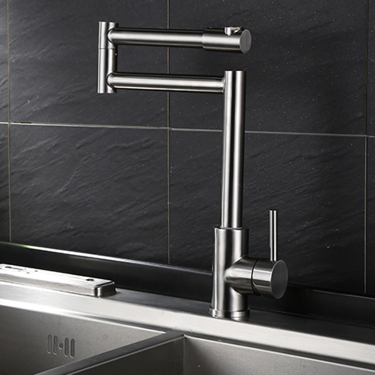 304 stainless steel folding kitchen faucet Hot and cold wash basin sink Double basin faucet Rotating lead-free drawing