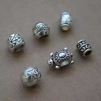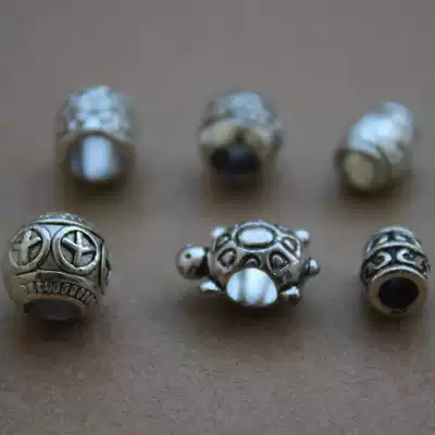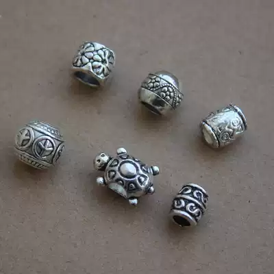 DIY jewelry accessories vintage Tibetan Silver big hole beads ancient silver hand beaded material Miao silver handmade semi-finished products