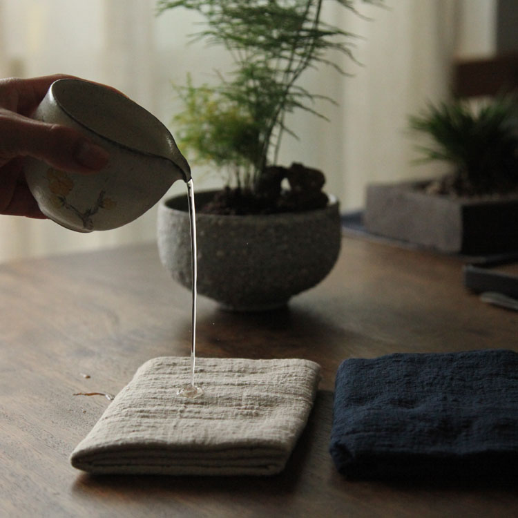 Self-reserved tea towels washed cotton linen thickened Zen-style Absorbent Cloth Upscale Tea Aisle Two
