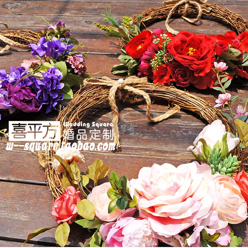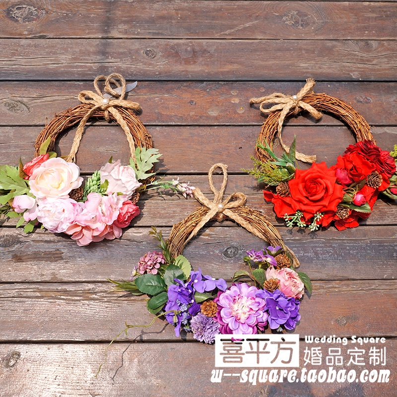 American Country Garden Pension Walls Decorated Wedding Room Door - anti - real - wreath shop window decoration