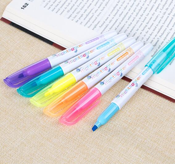 Colour Fluorescent Pen Mark Pen Mark Pen Six Color Select double head Fluorescent Pen Fiber Head Candy Color Skew Head Orange Yellow Blue Green Purple Pink Fluorescent Marker Pen